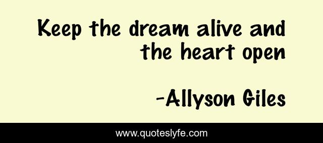 "Allyson Giles Quotes." Quoteslyfe.com, 2025. Tue. 09 Dec. 2025. <https://www.quoteslyfe.com/quote/Keep-the-dream-alive-and-the-heart-121243>.