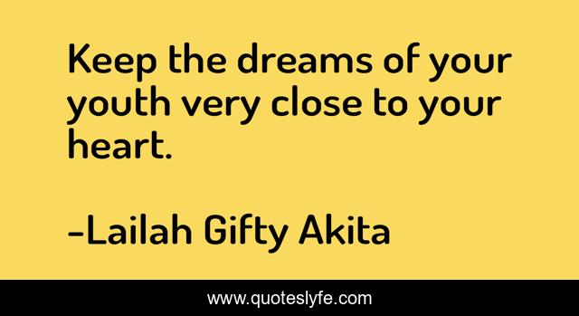 This page presents the quote "Keep the dreams of your youth very close to your heart.". Author of this quote is Lailah Gifty Akita. This quote is about dreams-inspirational, dreams, youthful-youth, dreams-do-come-true,.