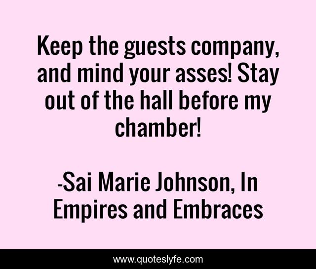 "Sai Marie Johnson, In Empires and Embraces Quotes." Quoteslyfe.com, 2025. Fri. 05 Dec. 2025. <https://www.quoteslyfe.com/quote/Keep-the-guests-company-and-mind-your-213777>.