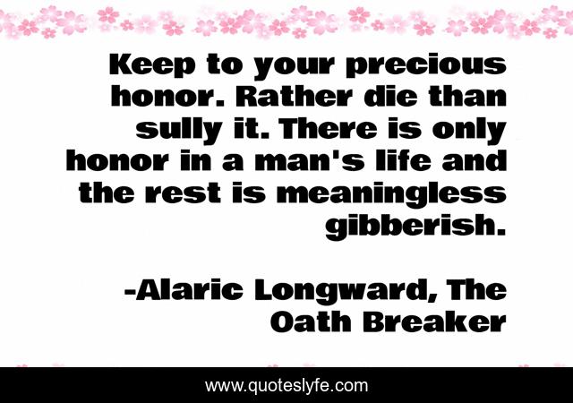 This page presents the quote "Keep to your precious honor. Rather die than sully it. There is only honor in a man's life and the rest is meaningless gibberish.". Author of this quote is Alaric Longward, The Oath Breaker. .