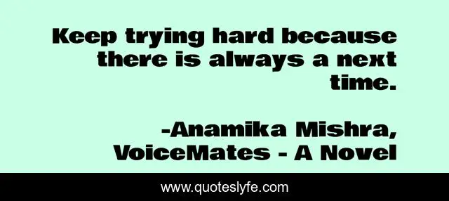 This page presents the quote "Keep trying hard because there is always a next time.". Author of this quote is Anamika Mishra, VoiceMates - A Novel. This quote is about confidence, success, positive, motivational, leadership, optimistic, life-and-living, dreams,.