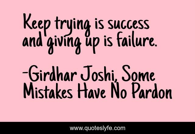 "Girdhar Joshi, Some Mistakes Have No Pardon Quotes." Quoteslyfe.com, 2025. Fri. 05 Dec. 2025. <https://www.quoteslyfe.com/quote/Keep-trying-is-success-and-giving-up-144902>.