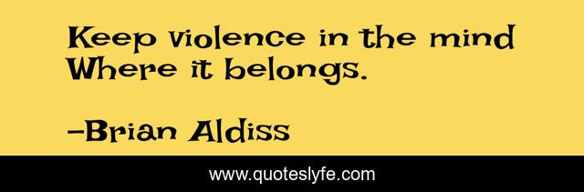 "Brian Aldiss Quotes." Quoteslyfe.com, 2025. Mon. 08 Dec. 2025. <https://www.quoteslyfe.com/quote/Keep-violence-in-the-mind-Where-it-278387>.
