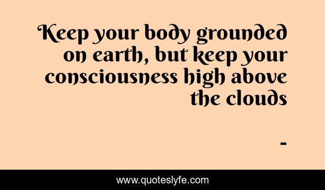 This page presents the quote "Keep your body grounded on earth, but keep your consciousness high above the clouds". Author of this quote is . This quote is about staying-grounded, positivity, consciousness,.