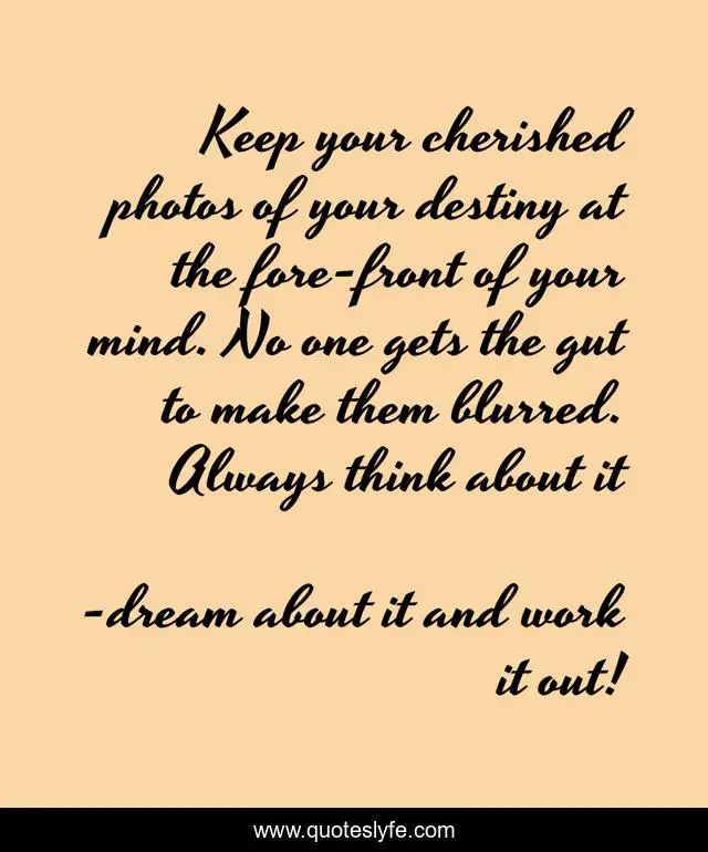 "dream about it and work it out! Quotes." Quoteslyfe.com, 2025. Tue. 09 Dec. 2025. <https://www.quoteslyfe.com/quote/Keep-your-cherished-photos-of-your-destiny-87472>.