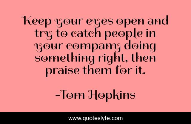 This page presents the quote "Keep your eyes open and try to catch people in your company doing something right, then praise them for it.". Author of this quote is Tom Hopkins. This quote is about gratitude, motivation,.