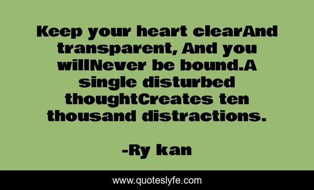 Keep your heart clearAnd transparent, And you willNever be bound.A single disturbed thoughtCreates ten thousand distractions.