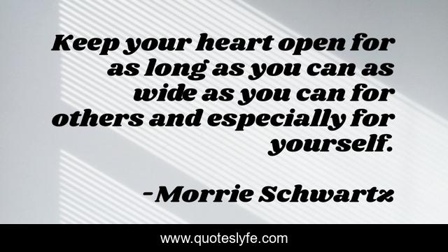 This page presents the quote "Keep your heart open for as long as you can as wide as you can for others and especially for yourself.". Author of this quote is Morrie Schwartz. .