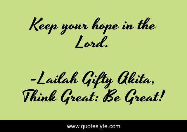 "Lailah Gifty Akita, Think Great: Be Great! Quotes." Quoteslyfe.com, 2025. Mon. 08 Dec. 2025. <https://www.quoteslyfe.com/quote/Keep-your-hope-in-the-Lord-140486>.