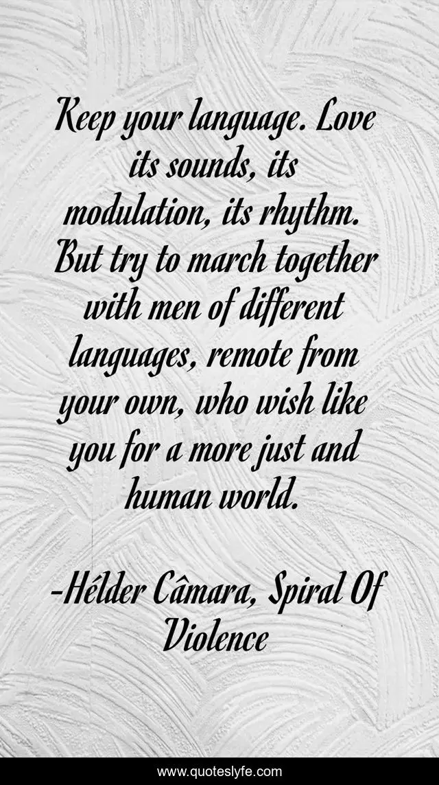 "Hélder Câmara, Spiral Of Violence Quotes." Quoteslyfe.com, 2025. Sun. 07 Dec. 2025. <https://www.quoteslyfe.com/quote/Keep-your-language-Love-its-sounds-its-71008>.