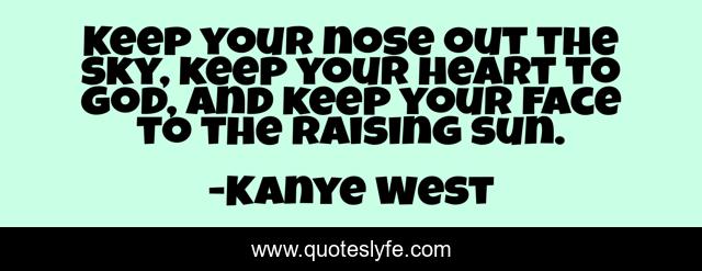 This page presents the quote "Keep your nose out the sky, keep your heart to god, and keep your face to the raising sun.". Author of this quote is Kanye West. This quote is about heart, sky, sun,.