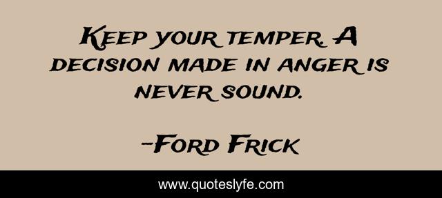 This page presents the quote "Keep your temper. A decision made in anger is never sound.". Author of this quote is Ford Frick. This quote is about sound, decision,.