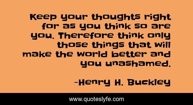 This page presents the quote "Keep your thoughts right for as you think so are you. Therefore think only those things that will make the world better and you unashamed.". Author of this quote is Henry H. Buckley. This quote is about positive, confidence,.