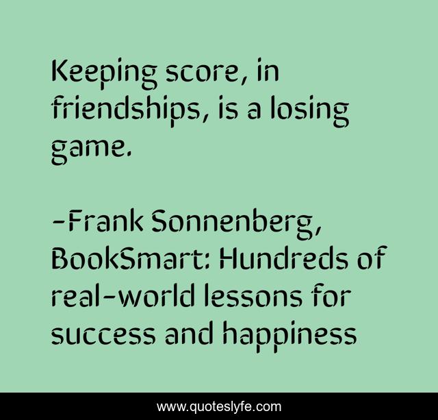 "Frank Sonnenberg, BookSmart: Hundreds of real-world lessons for success and happiness Quotes." Quoteslyfe.com, 2025. Fri. 05 Dec. 2025. <https://www.quoteslyfe.com/quote/Keeping-score-in-friendships-is-a-losing-50842>.