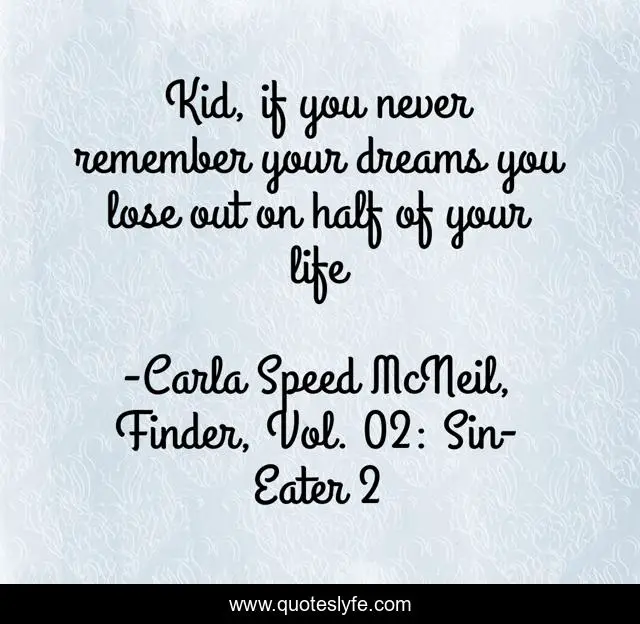 "Carla Speed McNeil, Finder, Vol. 02: Sin-Eater 2 Quotes." Quoteslyfe.com, 2025. Fri. 05 Dec. 2025. <https://www.quoteslyfe.com/quote/Kid-if-you-never-remember-your-dreams-133276>.