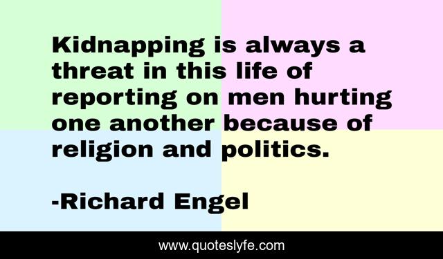 This page presents the quote "Kidnapping is always a threat in this life of reporting on men hurting one another because of religion and politics.". Author of this quote is Richard Engel. This quote is about politics, life, men,.