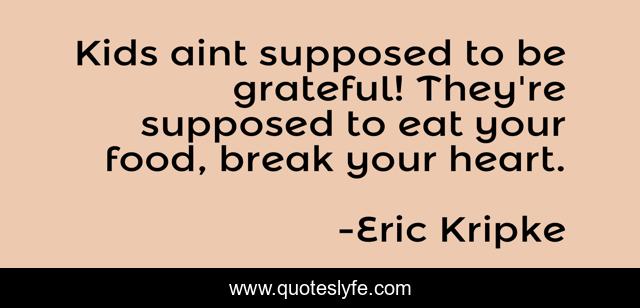This page presents the quote "Kids aint supposed to be grateful! They're supposed to eat your food, break your heart.". Author of this quote is Eric Kripke. This quote is about supernatural, bobby-singer, winchesters,.