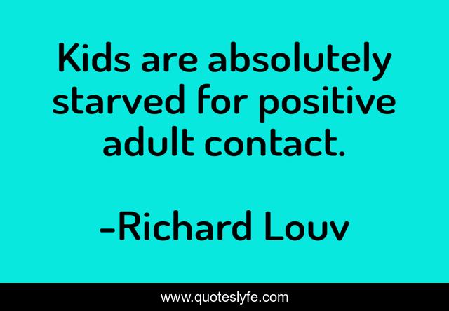 This page presents the quote "Kids are absolutely starved for positive adult contact.". Author of this quote is Richard Louv. This quote is about contact, adult, kids,.