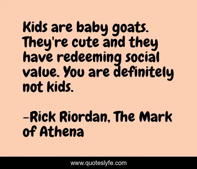 "Rick Riordan, The Mark of Athena Quotes." Quoteslyfe.com, 2025. Sun. 07 Dec. 2025. <https://www.quoteslyfe.com/quote/Kids-are-baby-goats-They-re-cute-241957>.