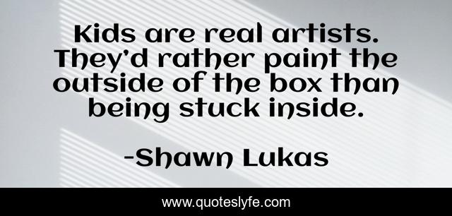 This page presents the quote "Kids are real artists. They’d rather paint the outside of the box than being stuck inside.". Author of this quote is Shawn Lukas. This quote is about paint, kids, artist, inspirational, enthusiasm,.