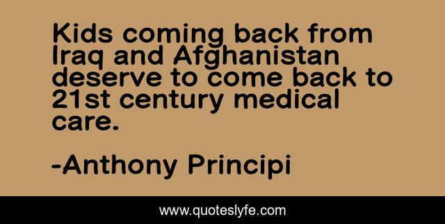 This page presents the quote "Kids coming back from Iraq and Afghanistan deserve to come back to 21st century medical care.". Author of this quote is Anthony Principi. This quote is about deserve, kids, care,.