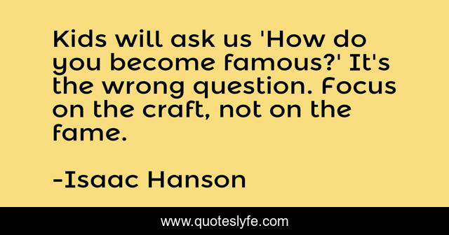 This page presents the quote "Kids will ask us 'How do you become famous?' It's the wrong question. Focus on the craft, not on the fame.". Author of this quote is Isaac Hanson. This quote is about focus, fame,.