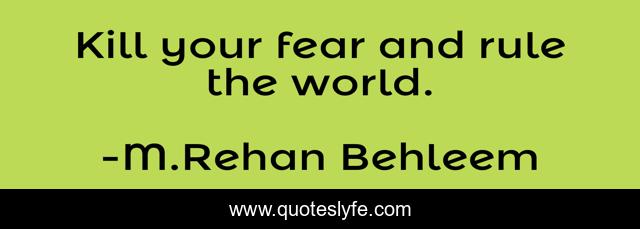 This page presents the quote "Kill your fear and rule the world.". Author of this quote is M.Rehan Behleem. This quote is about life, positive, motivational, confidence, optimistic, world, hope,.