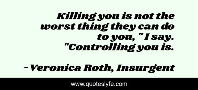 This page presents the quote "Killing you is not the worst thing they can do to you, " I say. "Controlling you is.". Author of this quote is Veronica Roth, Insurgent. This quote is about inspirational-attitude, dauntless,.