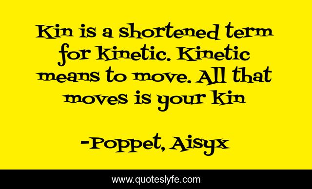 "Poppet, Aisyx Quotes." Quoteslyfe.com, 2025. Fri. 05 Dec. 2025. <https://www.quoteslyfe.com/quote/Kin-is-a-shortened-term-for-kinetic-132590>.