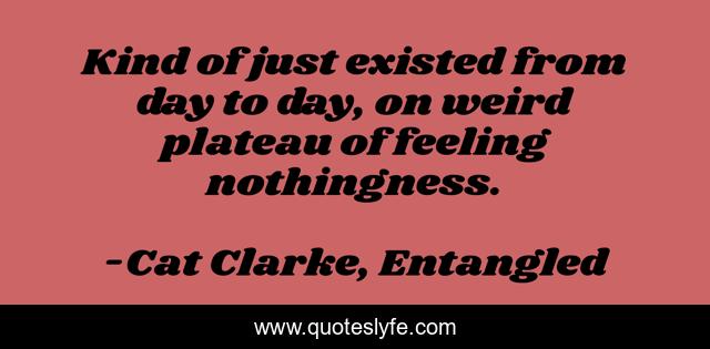 This page presents the quote "Kind of just existed from day to day, on weird plateau of feeling nothingness.". Author of this quote is Cat Clarke, Entangled. This quote is about cat-clarke, entangled, grace,.