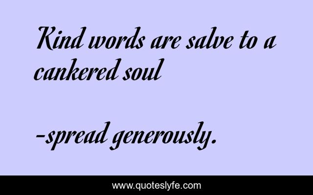 "spread generously. Quotes." Quoteslyfe.com, 2025. Sun. 07 Dec. 2025. <https://www.quoteslyfe.com/quote/Kind-words-are-salve-to-a-cankered-135285>.