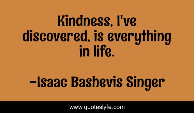 This page presents the quote "Kindness, I've discovered, is everything in life.". Author of this quote is Isaac Bashevis Singer. This quote is about everything, kindness,.