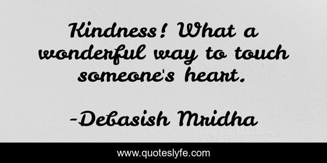 This page presents the quote "Kindness! What a wonderful way to touch someone's heart.". Author of this quote is Debasish Mridha. This quote is about miraboli, oscar-wilde, touch-someone-s-heart, philosophy, debasish-mridha, tagore, quotes, buddha, debasish-mridha-md,.