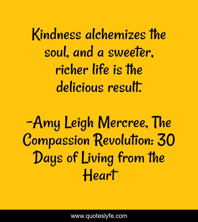 "Amy Leigh Mercree, The Compassion Revolution: 30 Days of Living from the Heart Quotes." Quoteslyfe.com, 2026. Wed. 14 Jan. 2026. <https://www.quoteslyfe.com/quote/Kindness-alchemizes-the-soul-and-a-sweeter-15183>.