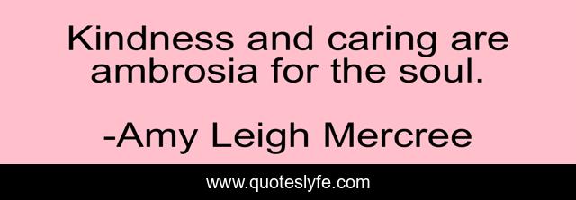 This page presents the quote "Kindness and caring are ambrosia for the soul.". Author of this quote is Amy Leigh Mercree. This quote is about caring, kindness, quotes-de-la-vida, amy-leigh-mercree, quote-of-the-day, soul, ambrosia, quotes-tumblr, inspirational,.