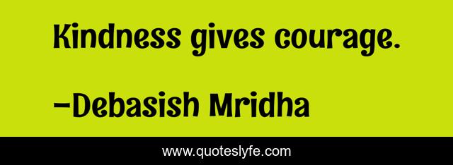 This page presents the quote "Kindness gives courage.". Author of this quote is Debasish Mridha. This quote is about life, education, love, knowledge, give, inspirational, intelligence, philosophy, wisdom,.