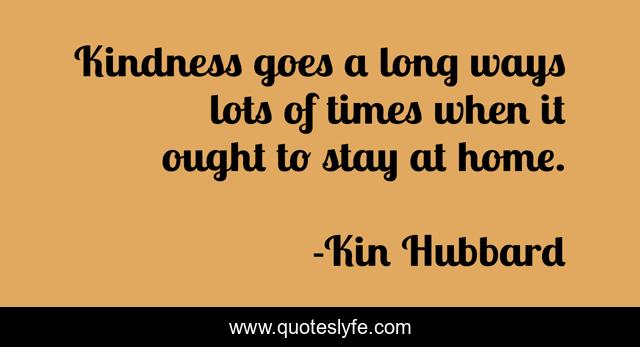 This page presents the quote "Kindness goes a long ways lots of times when it ought to stay at home.". Author of this quote is Kin Hubbard. This quote is about kindness, long, stay,.