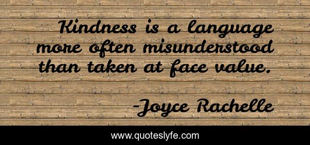 "Joyce Rachelle Quotes." Quoteslyfe.com, 2025. Fri. 05 Dec. 2025. <https://www.quoteslyfe.com/quote/Kindness-is-a-language-more-often-misunderstood-136527>.
