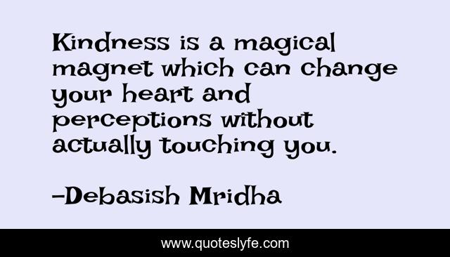 This page presents the quote "Kindness is a magical magnet which can change your heart and perceptions without actually touching you.". Author of this quote is Debasish Mridha. This quote is about kindness-is-magical, perceptions, philosophy, debasish-mridha, quotes, debasish-mridha-md, inspirational, enthusiasm, change-your-heart,.