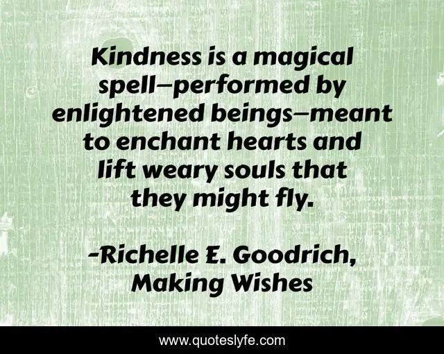 "Richelle E. Goodrich, Making Wishes Quotes." Quoteslyfe.com, 2025. Sun. 07 Dec. 2025. <https://www.quoteslyfe.com/quote/Kindness-is-a-magical-spell-performed-by-133494>.
