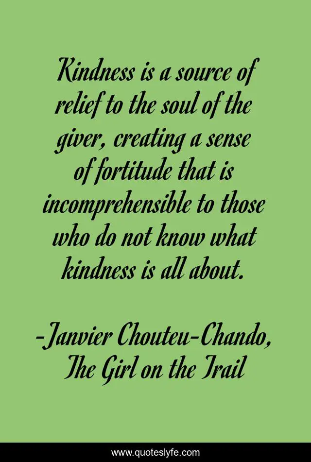 "Janvier Chouteu-Chando, The Girl on the Trail Quotes." Quoteslyfe.com, 2025. Fri. 05 Dec. 2025. <https://www.quoteslyfe.com/quote/Kindness-is-a-source-of-relief-to-13633>.