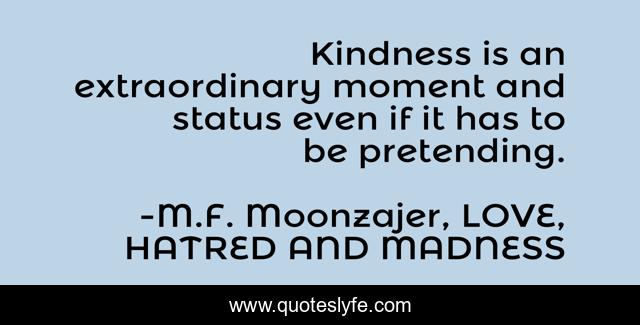 "M.F. Moonzajer, LOVE, HATRED AND MADNESS Quotes." Quoteslyfe.com, 2025. Fri. 05 Dec. 2025. <https://www.quoteslyfe.com/quote/Kindness-is-an-extraordinary-moment-and-status-136660>.