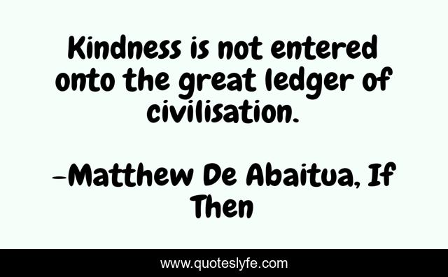 This page presents the quote "Kindness is not entered onto the great ledger of civilisation.". Author of this quote is Matthew De Abaitua, If Then. This quote is about kindness, civilization,.