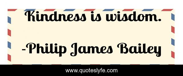 "Philip James Bailey Quotes." Quoteslyfe.com, 2025. Mon. 08 Dec. 2025. <https://www.quoteslyfe.com/quote/Kindness-is-wisdom-322586>.