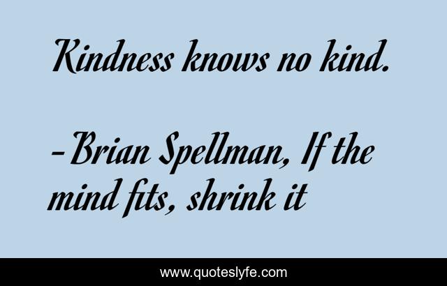 "Brian Spellman, If the mind fits, shrink it Quotes." Quoteslyfe.com, 2025. Mon. 08 Dec. 2025. <https://www.quoteslyfe.com/quote/Kindness-knows-no-kind-136409>.