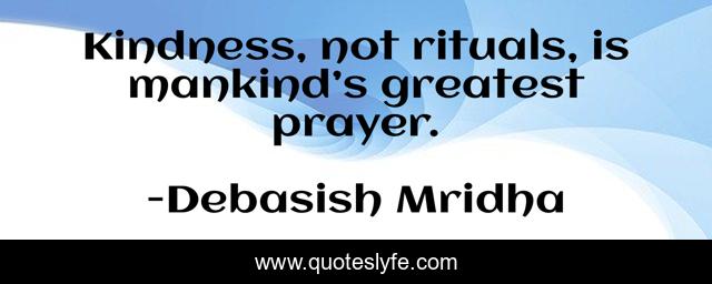 "Debasish Mridha Quotes." Quoteslyfe.com, 2025. Mon. 08 Dec. 2025. <https://www.quoteslyfe.com/quote/Kindness-not-rituals-is-mankind-s-greatest-23923>.