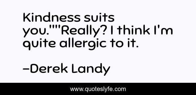 This page presents the quote "Kindness suits you.""Really? I think I'm quite allergic to it.". Author of this quote is Derek Landy. This quote is about derek-landy, kindness, skulduggery-pleasant, humour, allergic,.