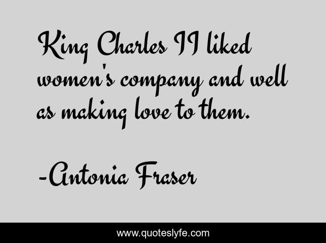 This page presents the quote "King Charles II liked women's company and well as making love to them.". Author of this quote is Antonia Fraser. This quote is about king, company, love, affection,.
