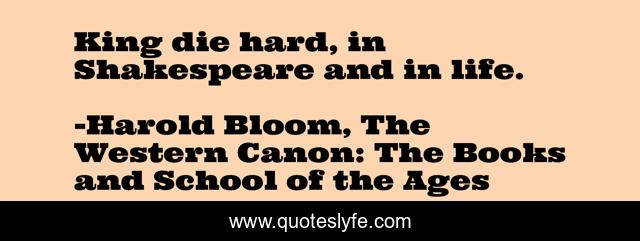 "Harold Bloom, The Western Canon: The Books and School of the Ages Quotes." Quoteslyfe.com, 2025. Tue. 09 Dec. 2025. <https://www.quoteslyfe.com/quote/King-die-hard-in-Shakespeare-and-in-64784>.