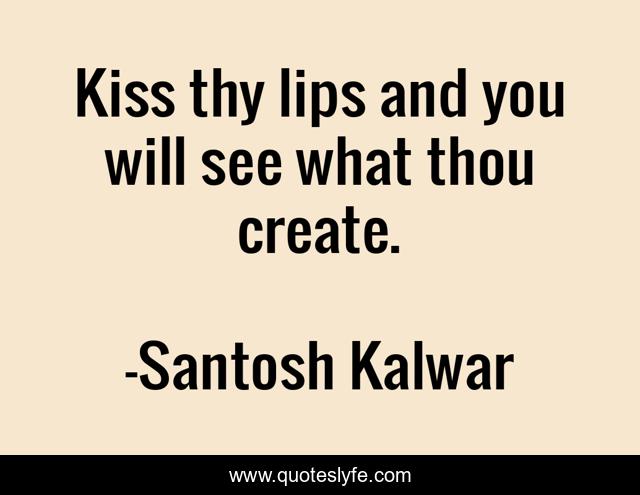 This page presents the quote "Kiss thy lips and you will see what thou create.". Author of this quote is Santosh Kalwar. This quote is about lips, romantic, kiss,.
